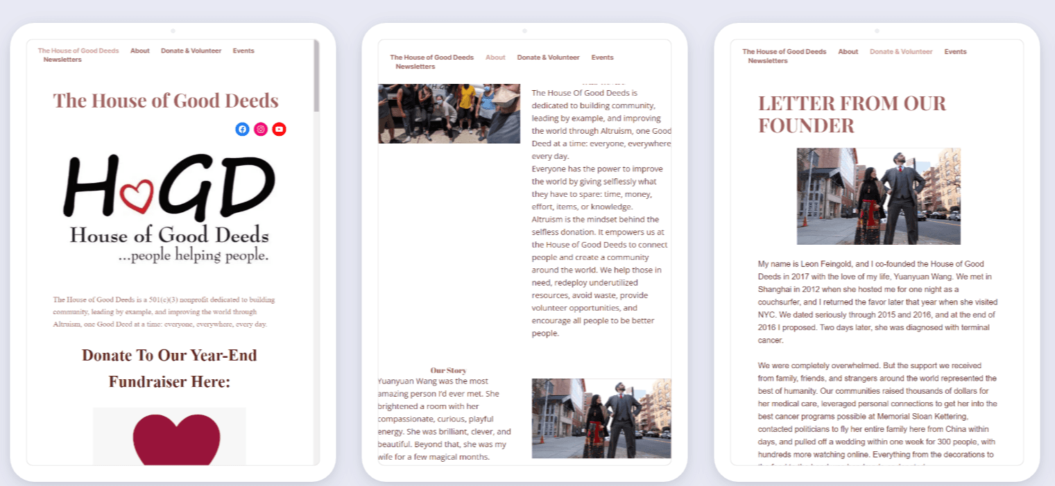 Impactful Results: Played a critical role in improving the organization’s online presence, helping House of Good Deeds connect with a wider audience and achieve its mission of spreading kindness and making a positive impact on the community.